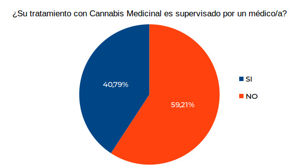 En referencia a que casi el 60% (Gráfico 3) consuma cannabis medicinal sin indicación y/o seguimiento médico Jorgelina Borao, médica generalista y de familia y especialista en tratamiento del dolor; integrante del equipo de MIRADAS, sostiene que «El médico debe ser parte de un proyecto terapéutico compartido ente él y el paciente, acompañar, supervisar el uso del cannabis. Si bien es una droga realmente muy noble, se debe estar atento a sus posibles efectos adversos y asesorar sobre interacciones con otros fármacos.